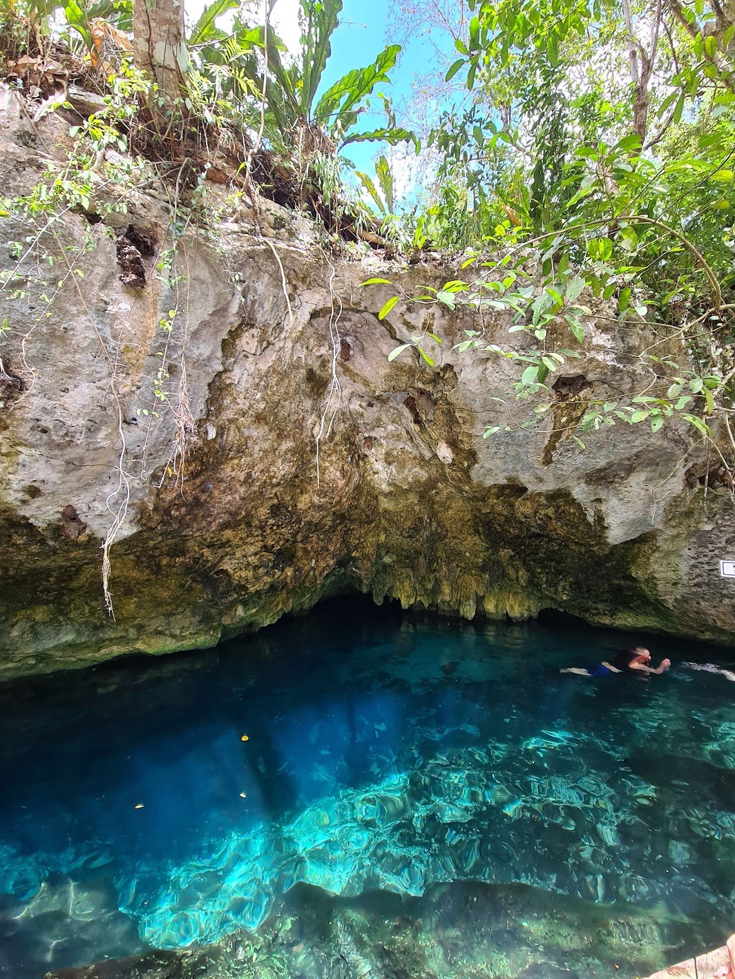 Cenote Azul – tinka lankytis su mažais vaikais, kadangi čia yra patogus priėjimas prie vandens ir daug seklių vietų plaukiojimui. Stebėkite įvairiausių dydžių žuvytes, atsipūskite medžių pavėsyje ir mėgaukitės mėlynosios cenotės grožiu. Ją rasite kelyje tarp Tulumo ir Playa del Carmen.