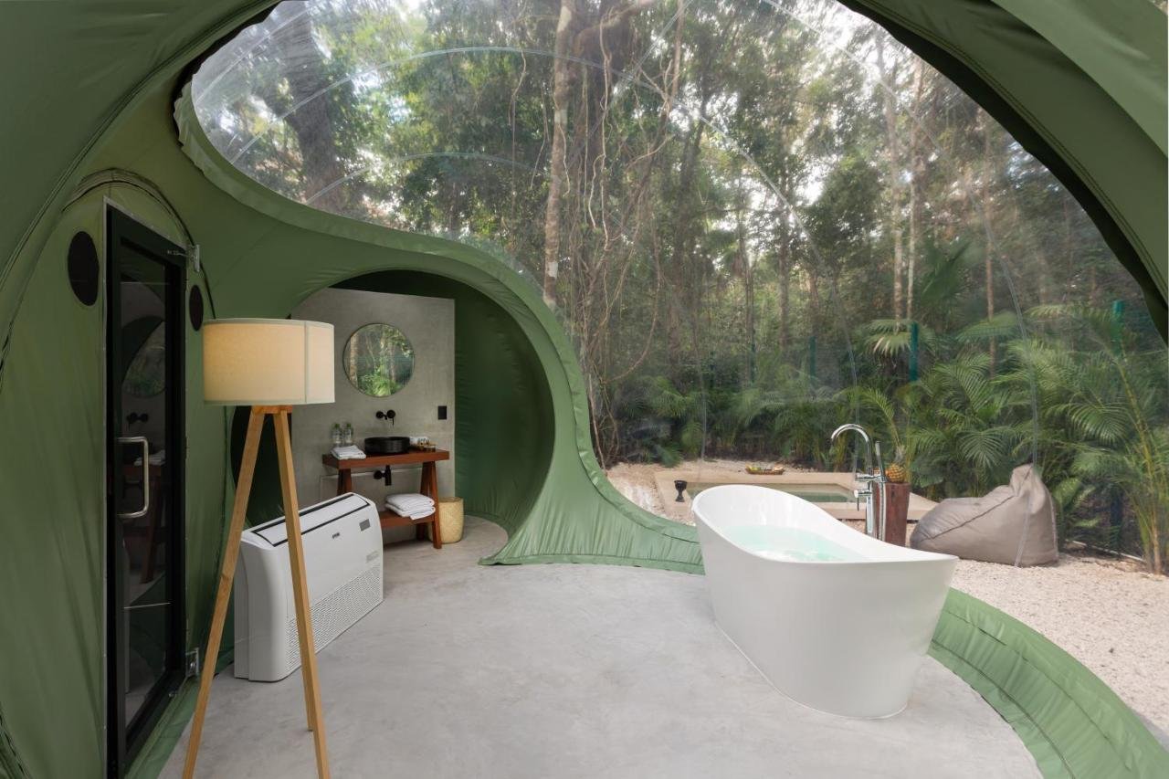 Ieškantiems neeilinių patirčių ir vertinantiems poilsį gamtoje. Oom Bubble – unikali viešnagės vieta džiunglių apsuptyje. Šis glamping tipo viešbutis yra greta žymiojo cenočių kelio (La Ruta de Los Cenotes), apie 20 km nuo Puerto Morelos.